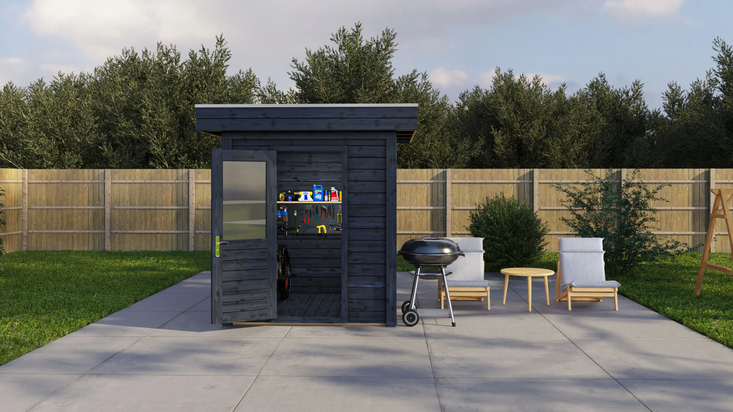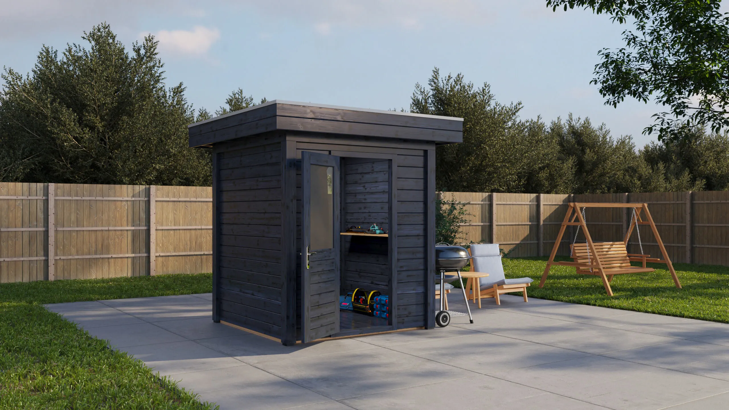 Das Lugarde Select Modern Gartenhaus zeichnet sich durch seine klare, zeitgemäße Architektur aus. Die Grundfläche von 200 × 200 cm ermöglicht eine flexible Nutzung als Arbeitsraum, Hobbyraum oder Rückzugsort.