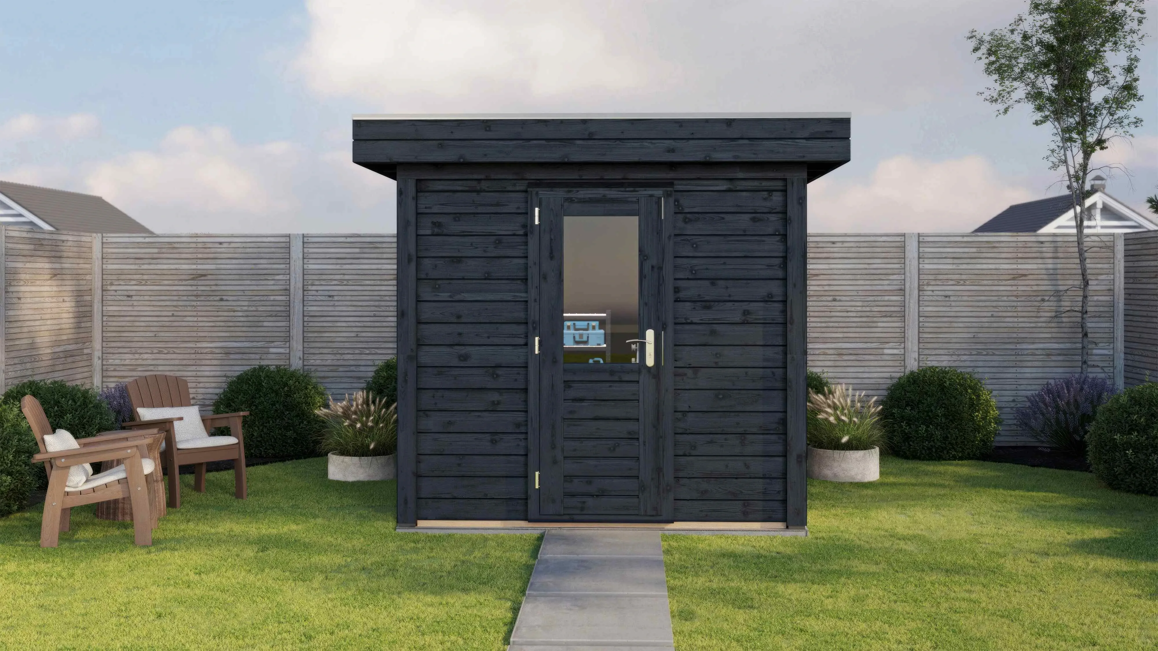 Das Lugarde Select Modern Gartenhaus zeichnet sich durch seine klare, zeitgemäße Architektur aus. Die Grundfläche von 250 × 250 cm ermöglicht eine flexible Nutzung als Arbeitsraum, Hobbyraum oder Rückzugsort.
