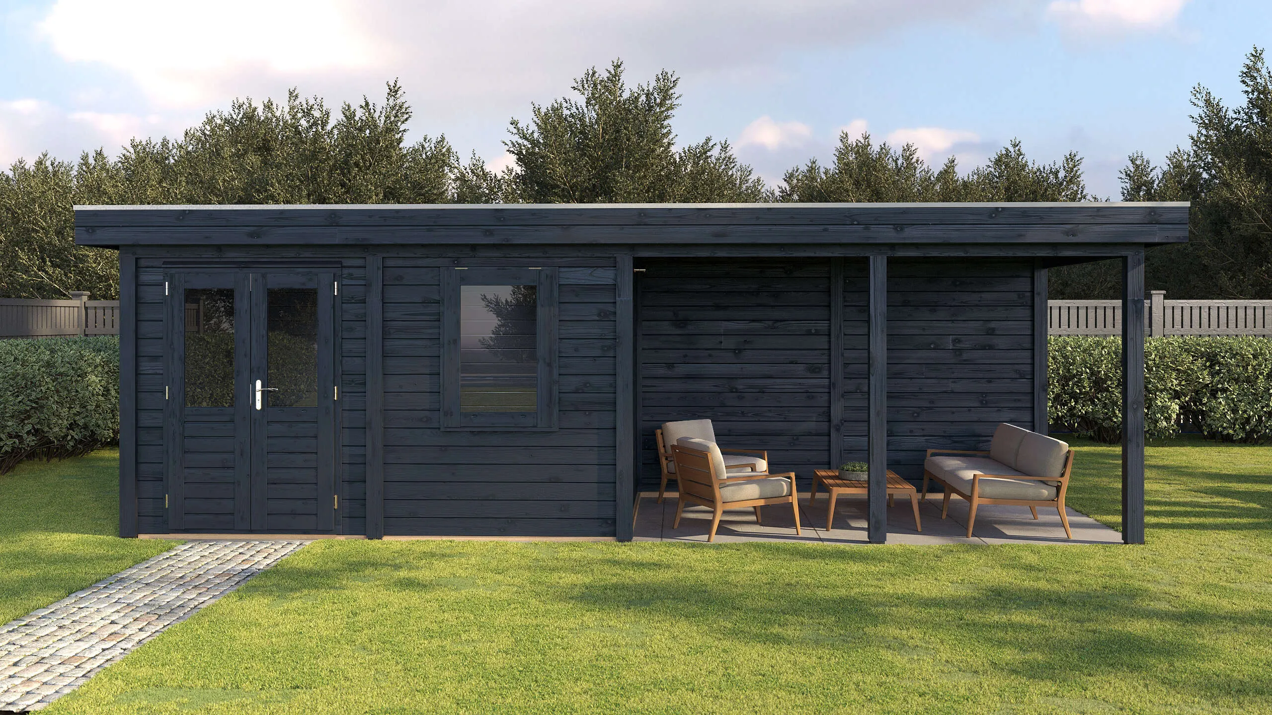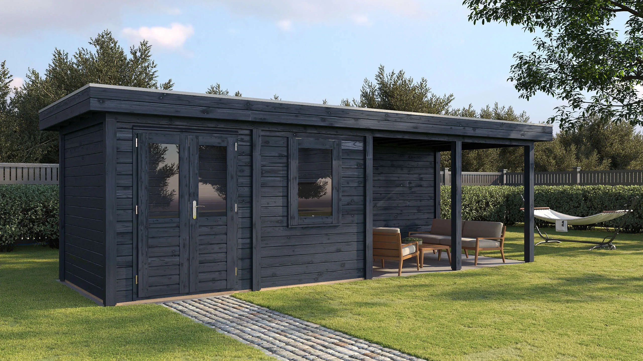 Produktinformationen "Lugarde Select Modern gartenhaus mit vordach 388x250cm + 400cm - Schwarzes Öl"