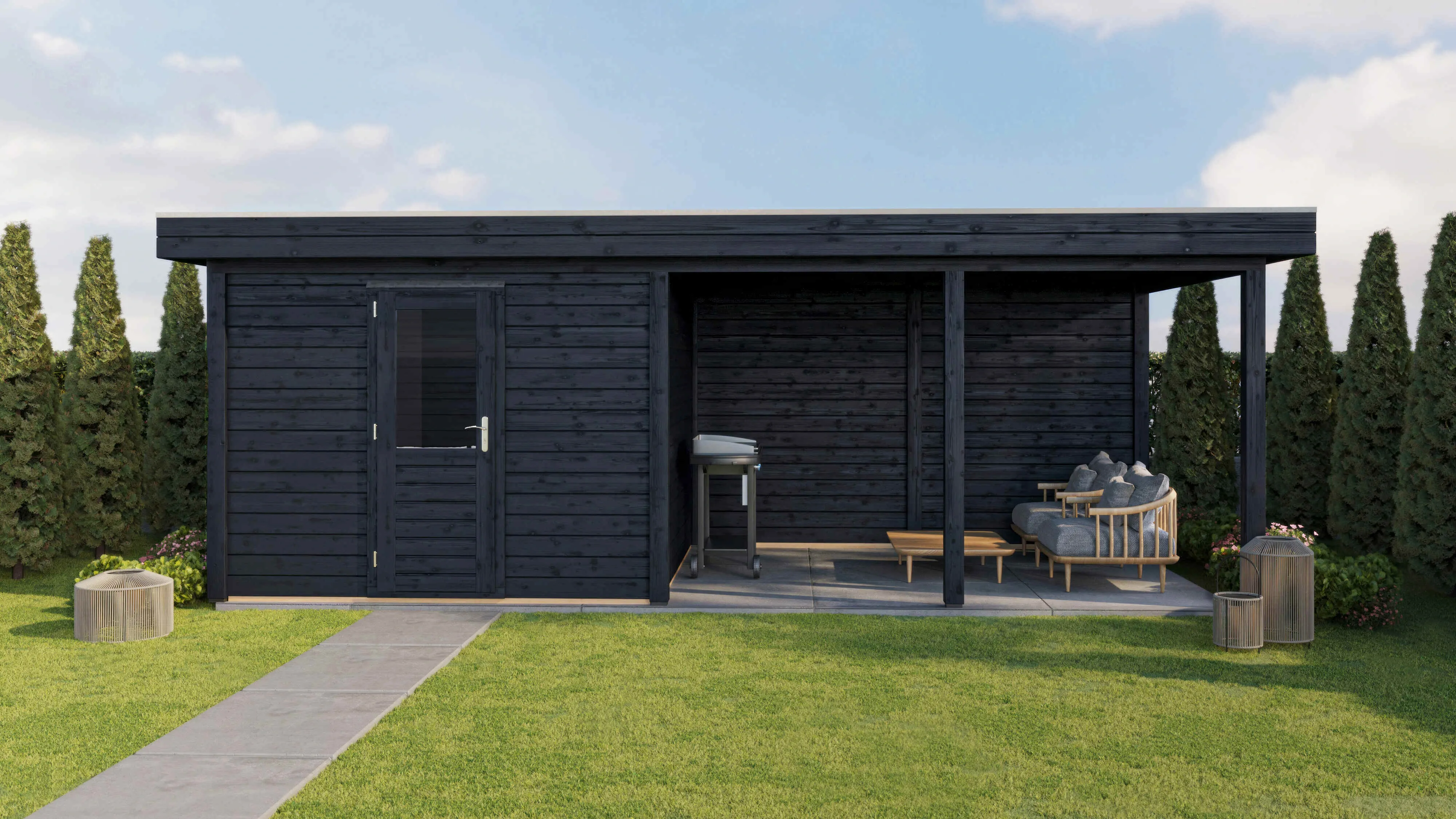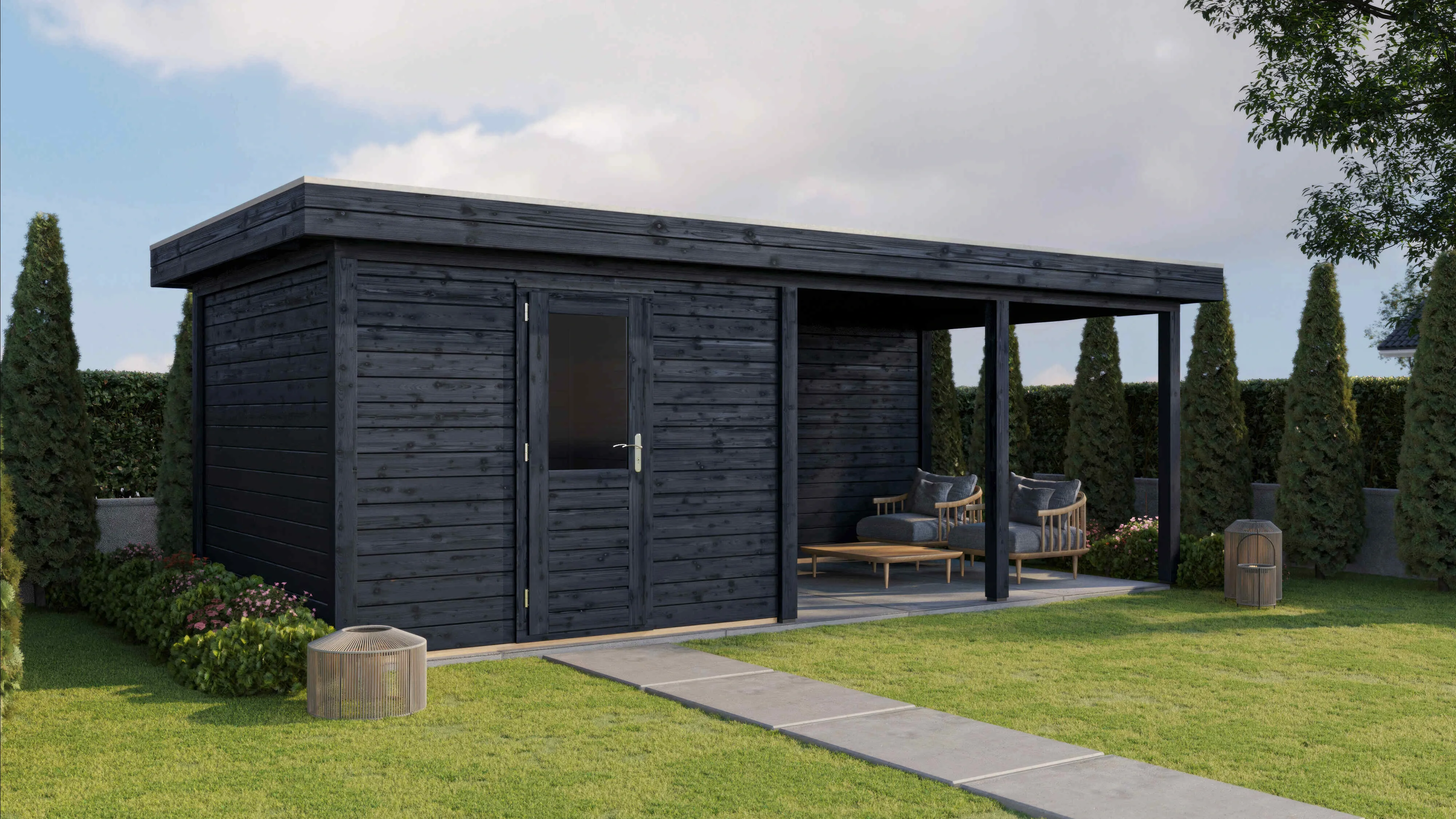 Produktinformationen "Lugarde Select Modern gartenhaus mit vordach Mannheim 300x300cm + 400cm - Schwarzes Öl"