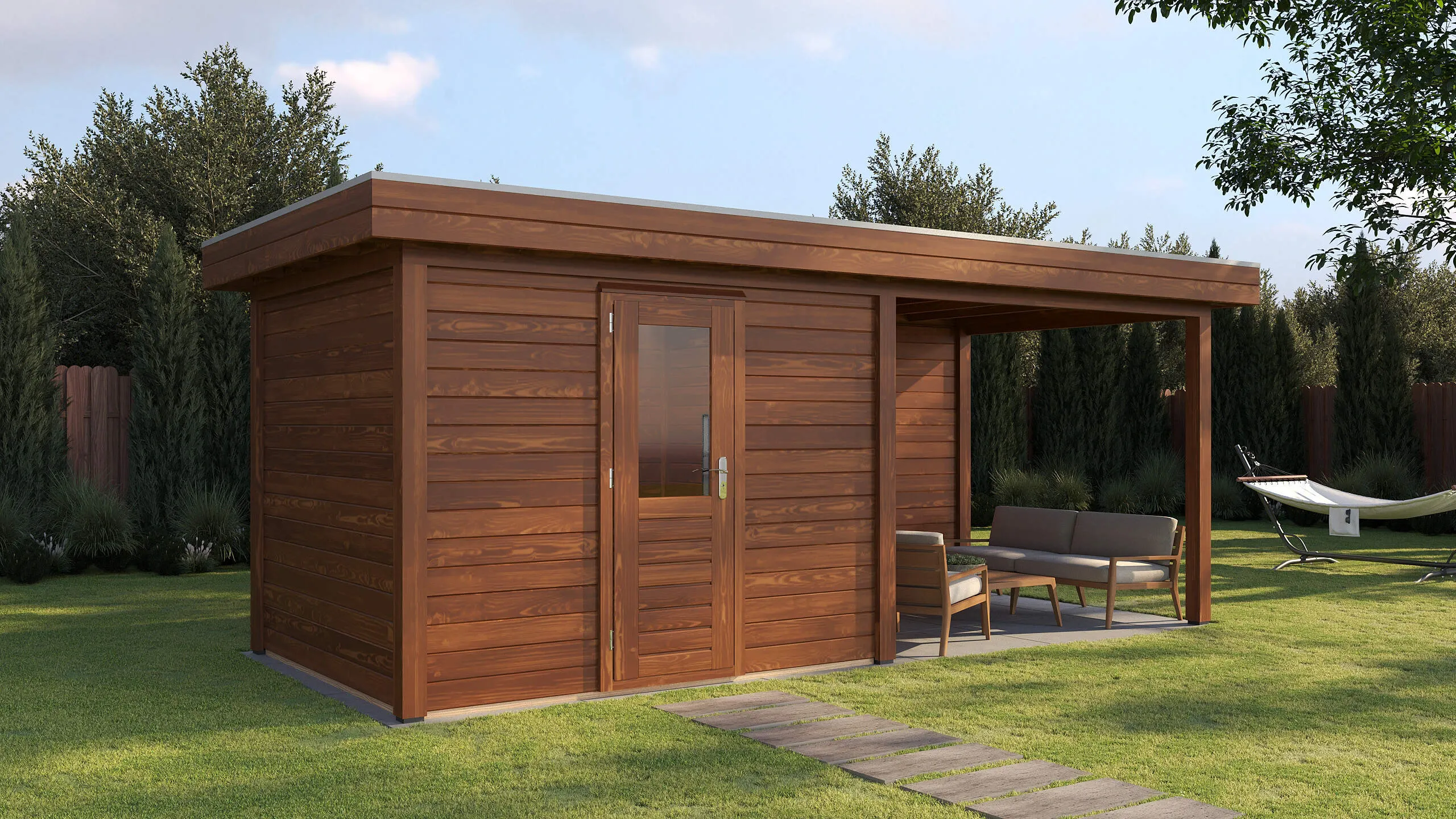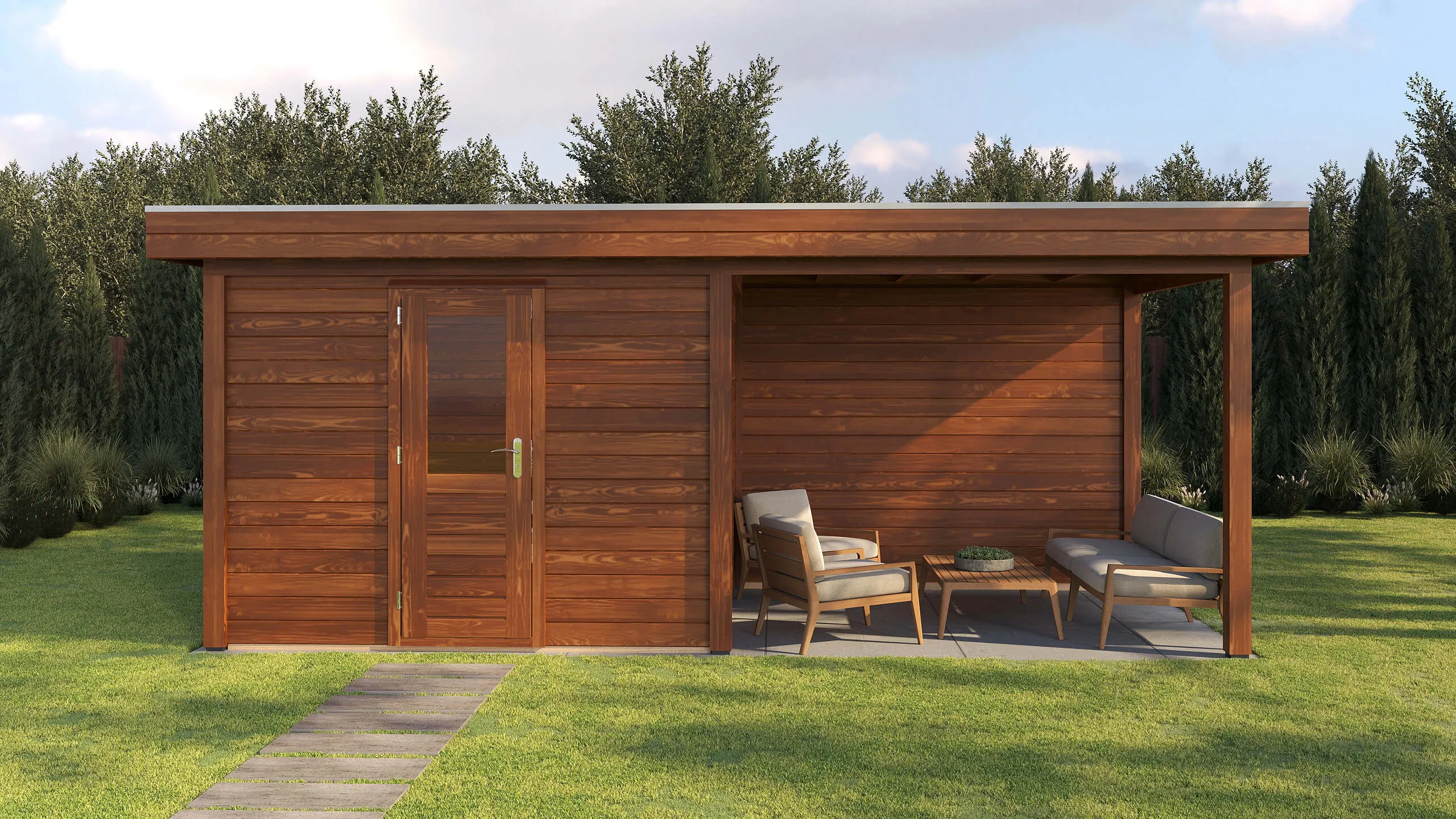Produktinformationen "Lugarde Select Modern gartenhaus mit vordach Nürnberg 300x250cm + 300cm - Braunes Öl"