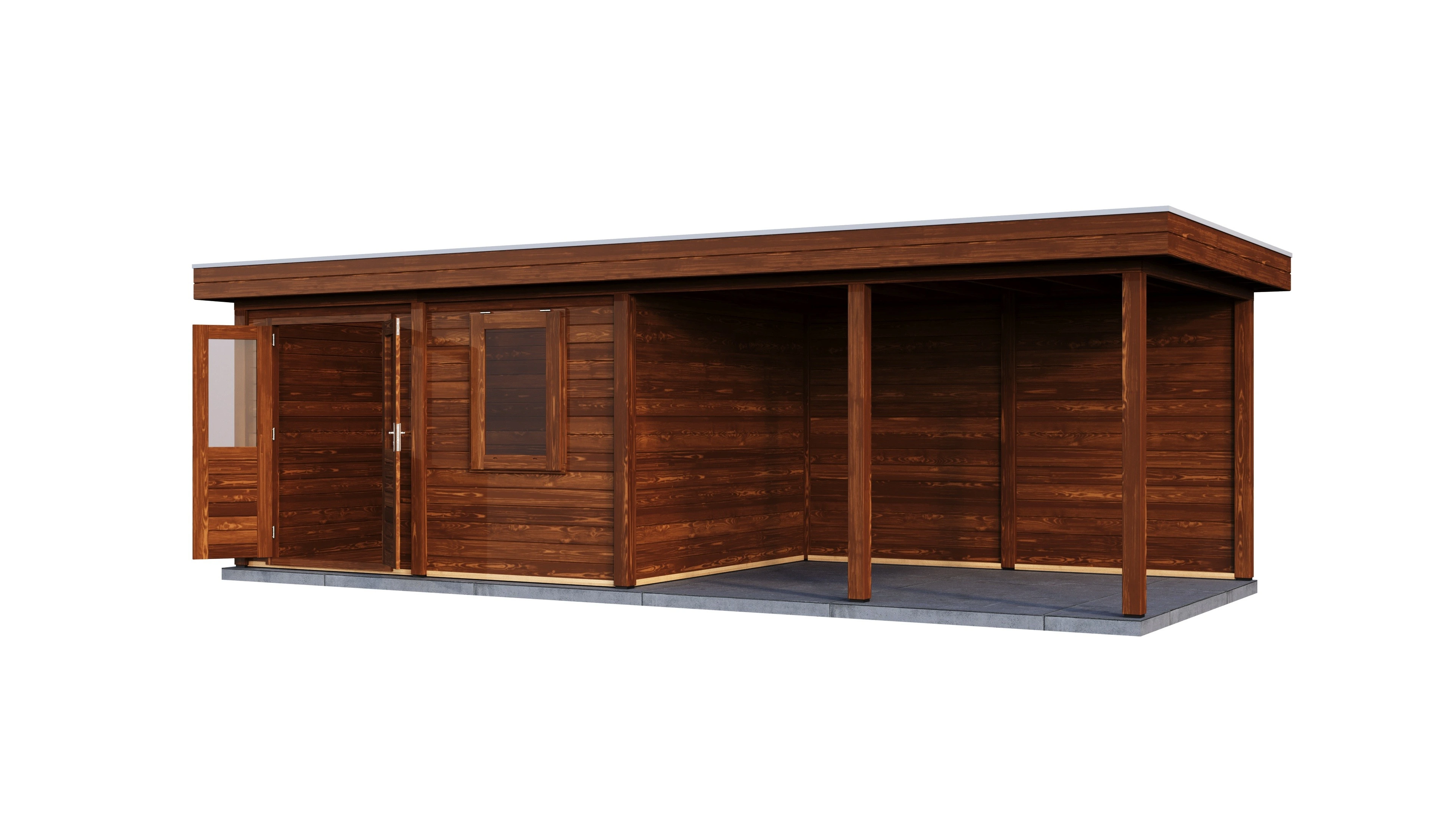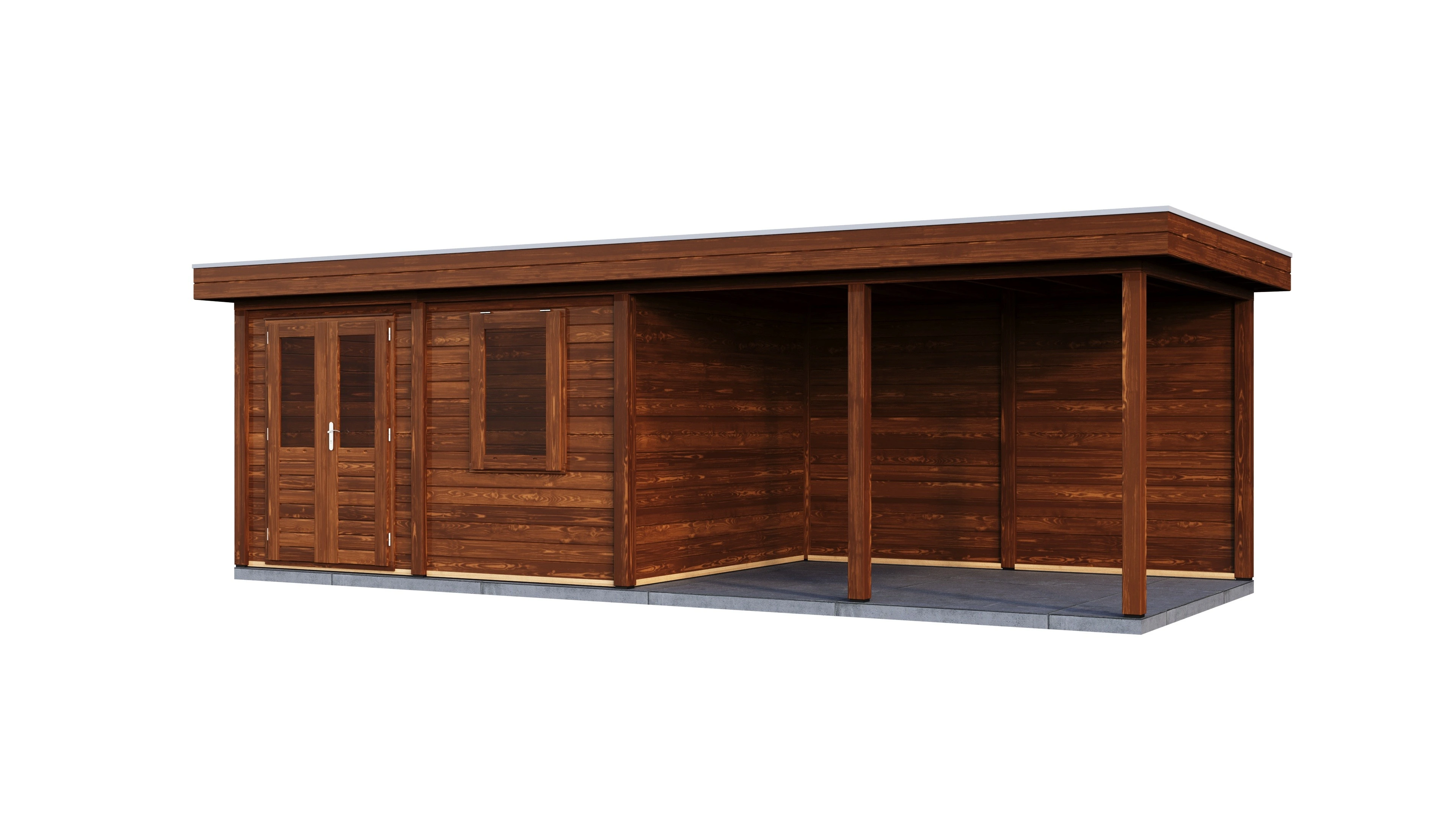 Produktinformationen "Lugarde Select Modern gartenhaus mit vordach Oldenburg 388x300cm + 400cm - Braunes Öl"