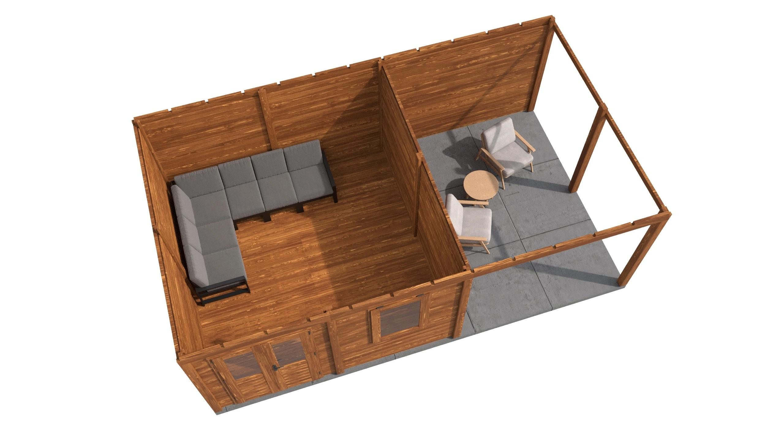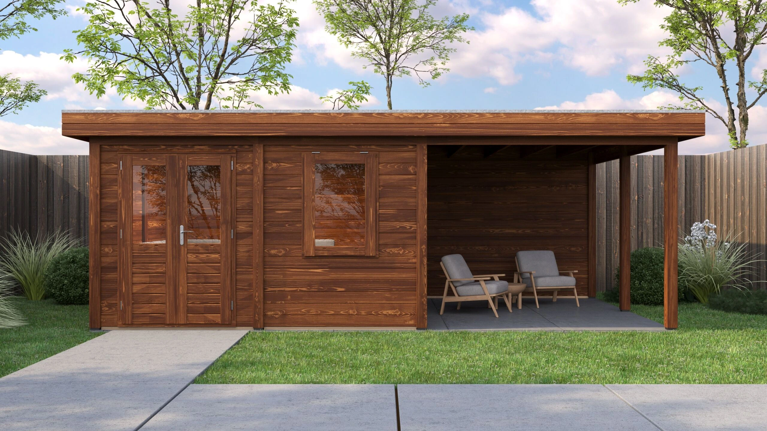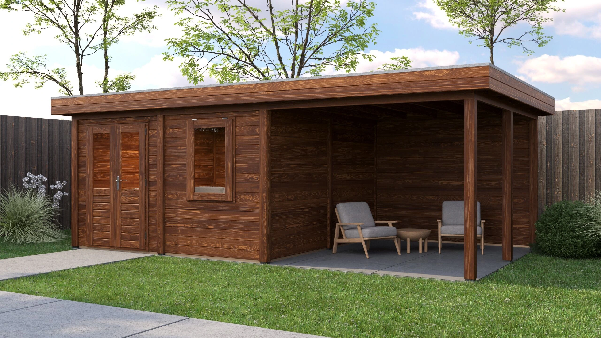 Produktinformationen "Lugarde Select Modern gartenhaus mit vordach Regensburg 388x388cm + 300cm - Braunes Öl"