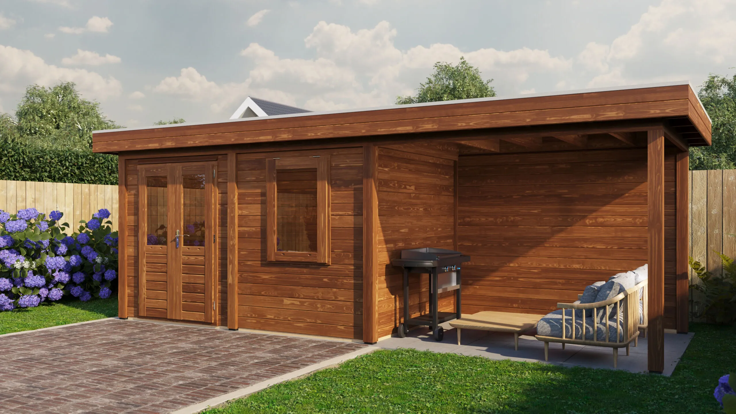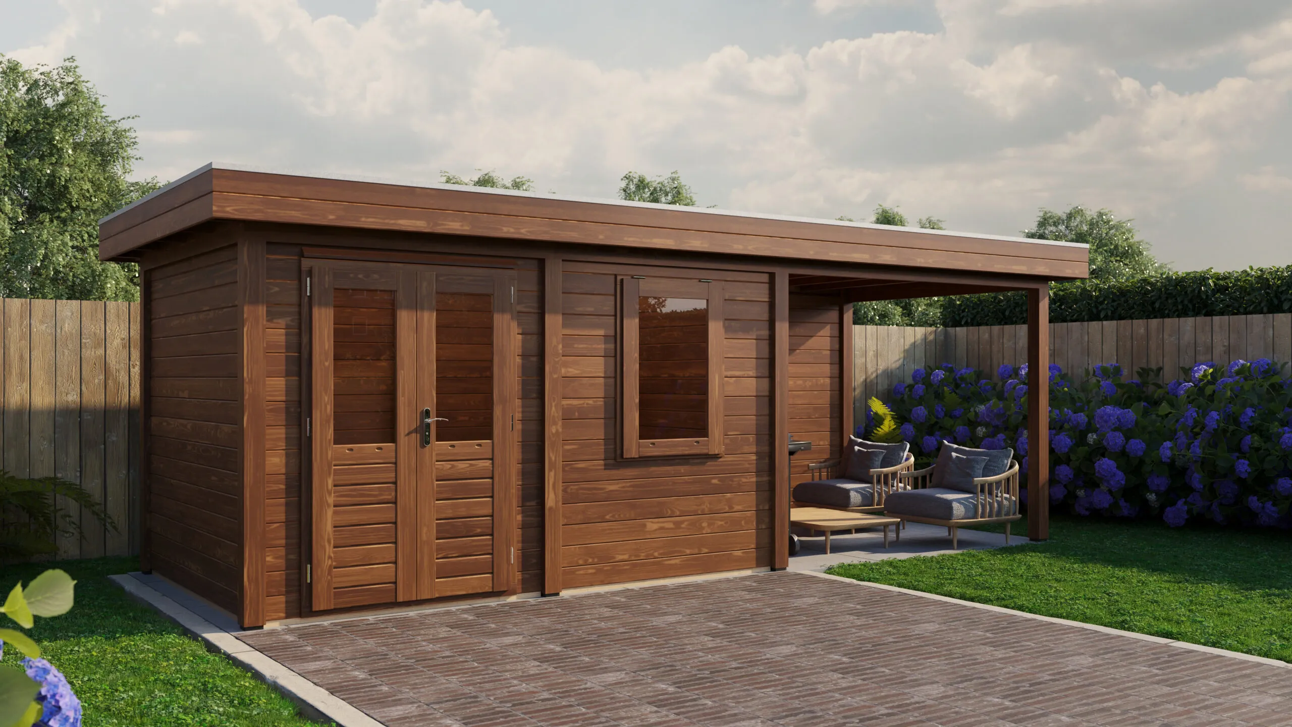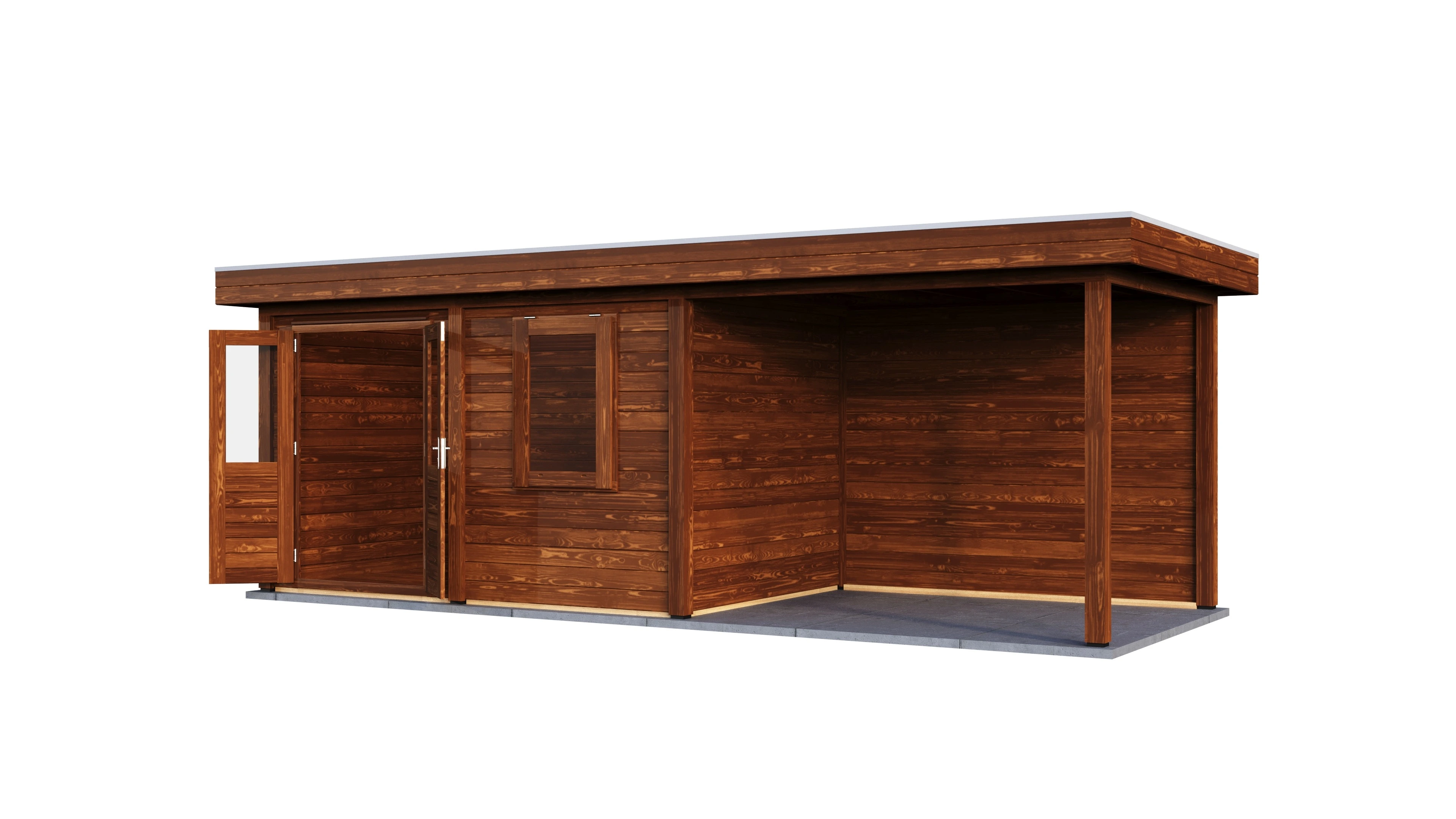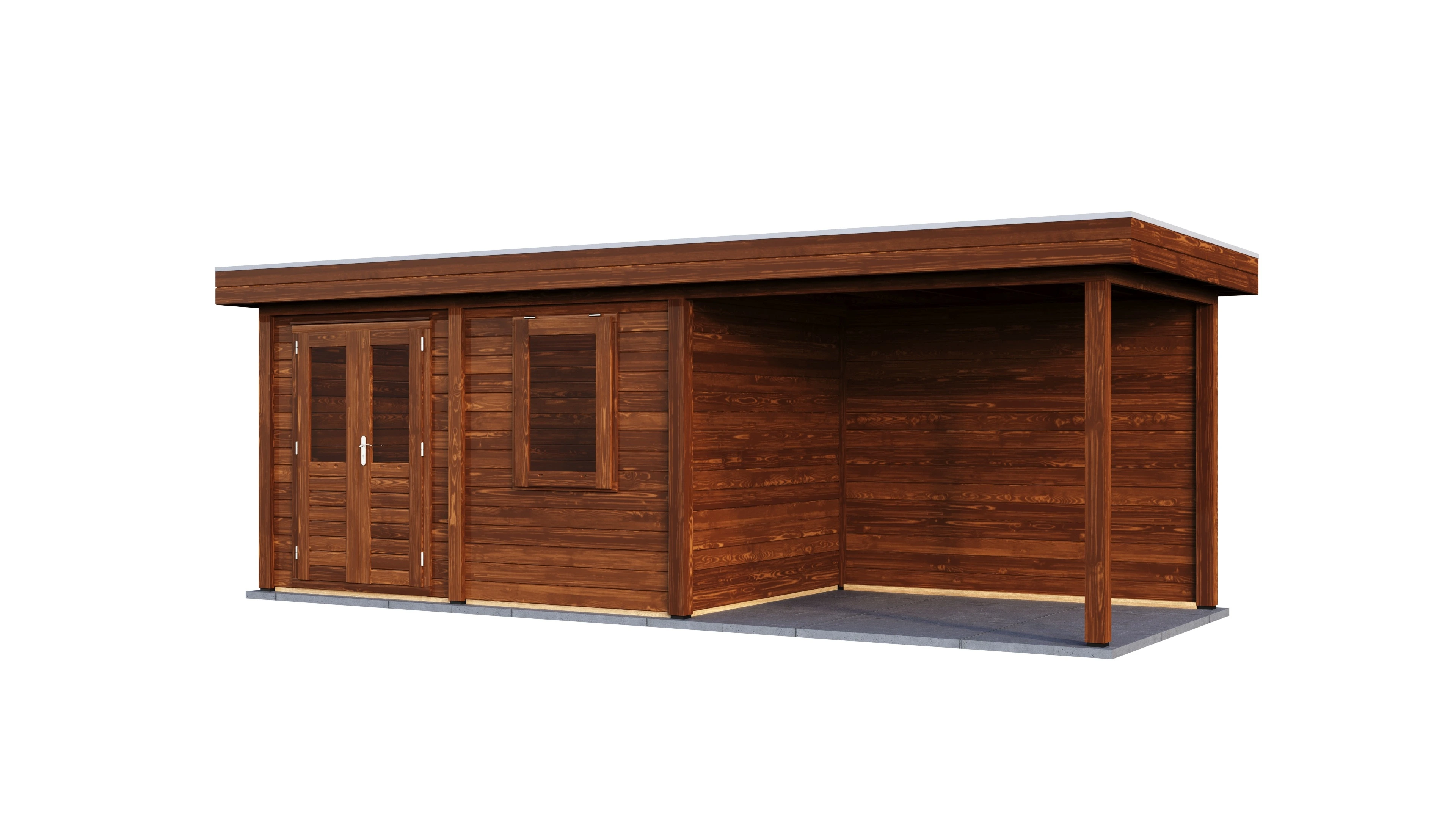Produktinformationen "Lugarde Select Modern gartenhaus mit vordach Rostock 388x250cm + 300cm - Braunes Öl"