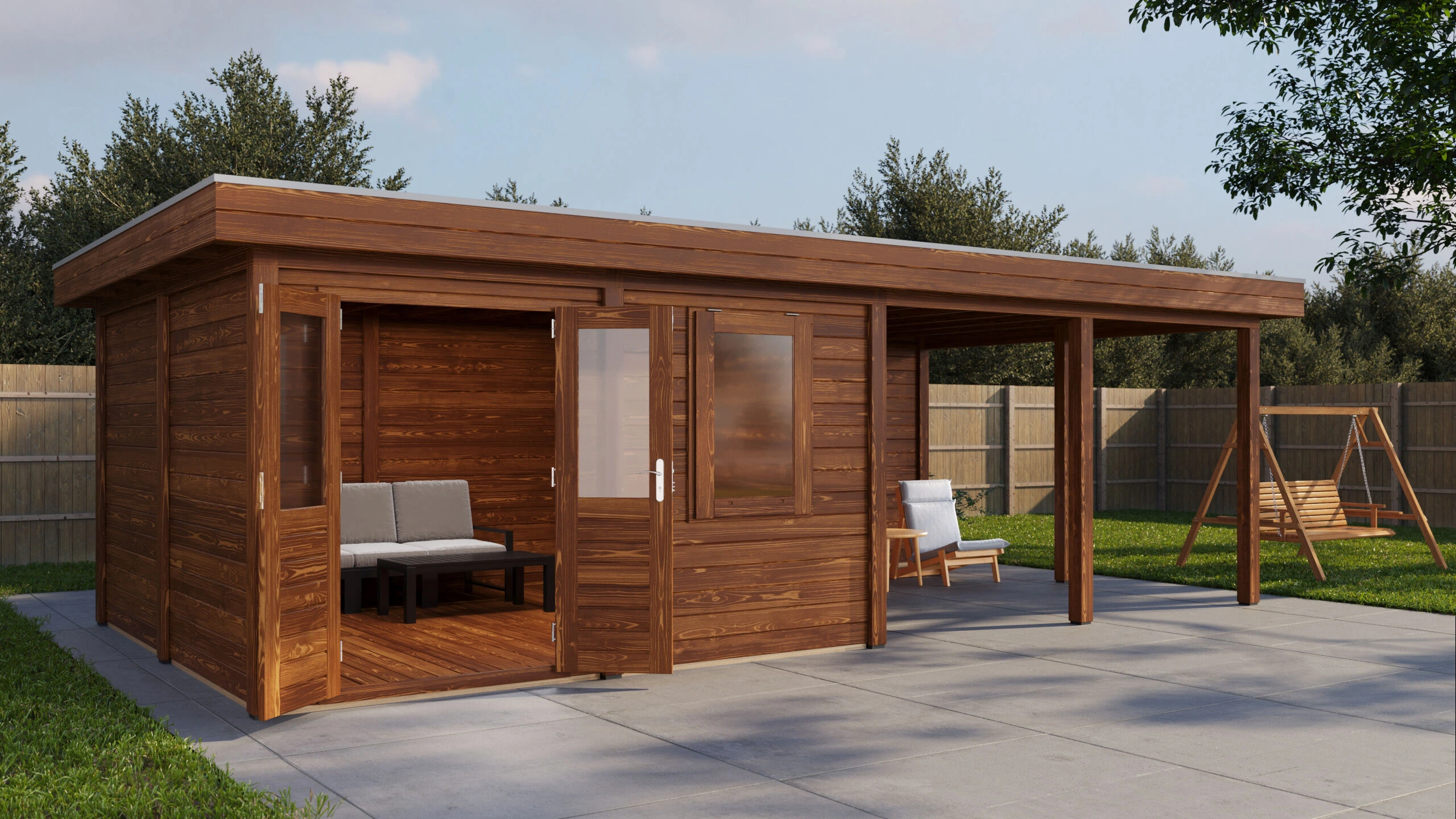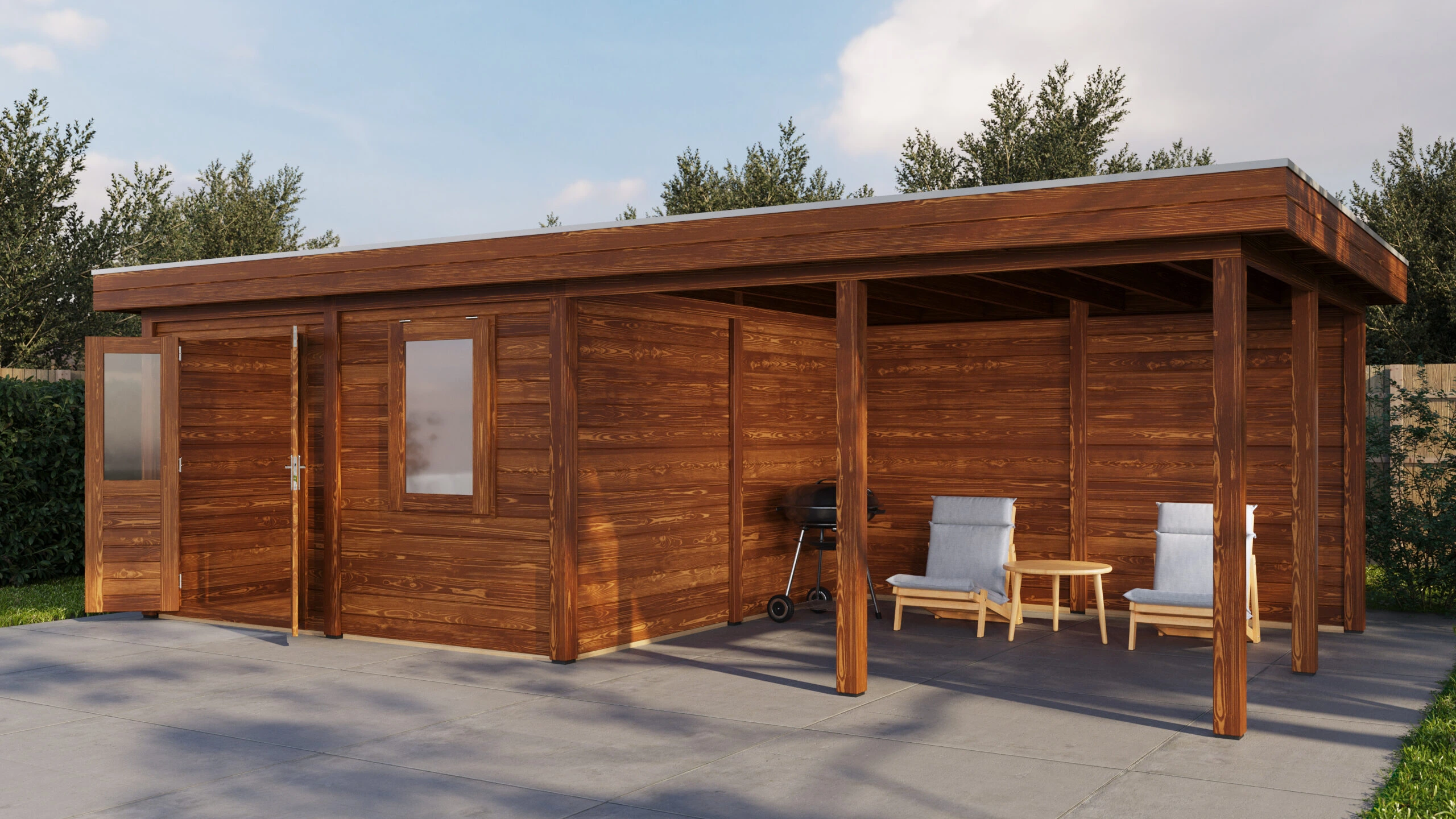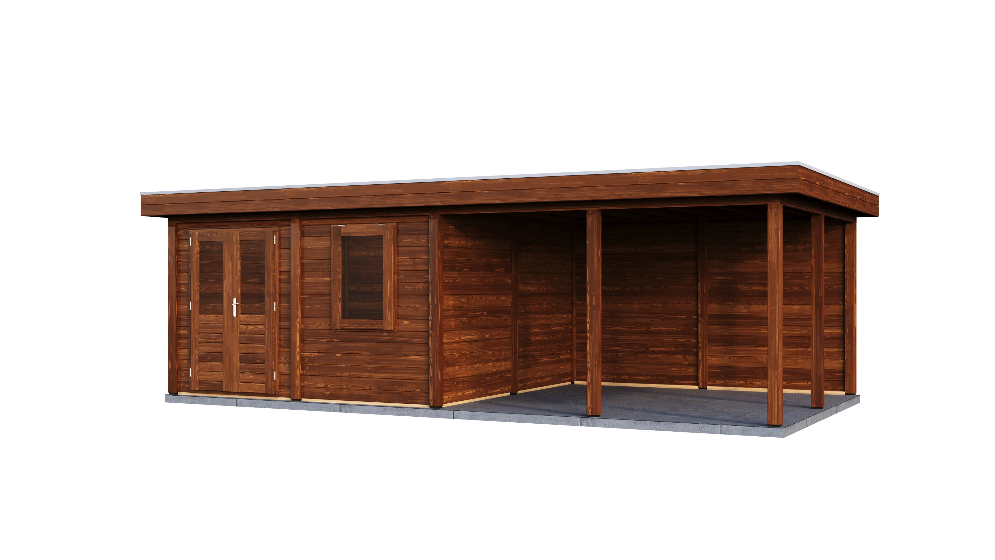 Produktinformationen "Lugarde Select Modern gartenhaus mit vordach Ulm 388x388cm + 400cm - Braunes Öl"