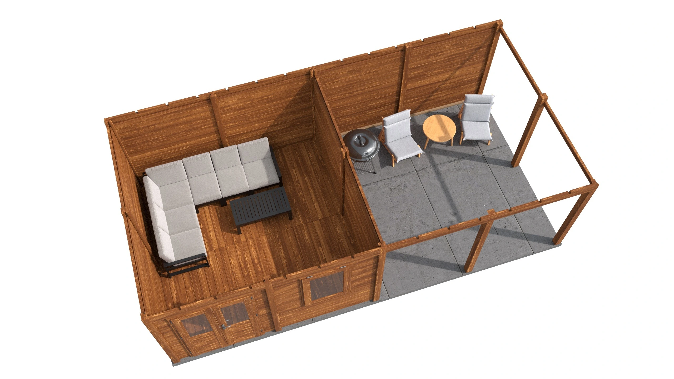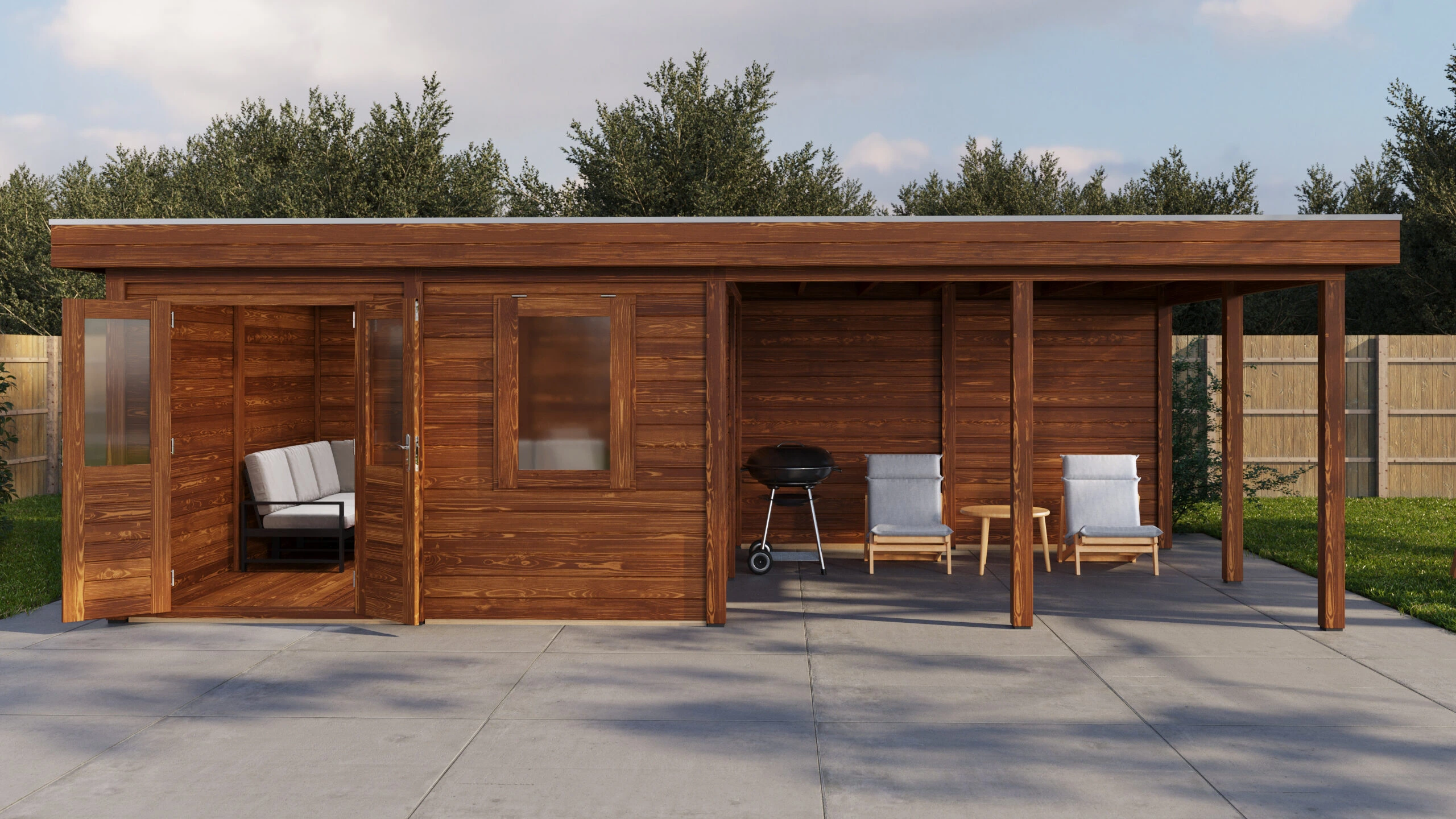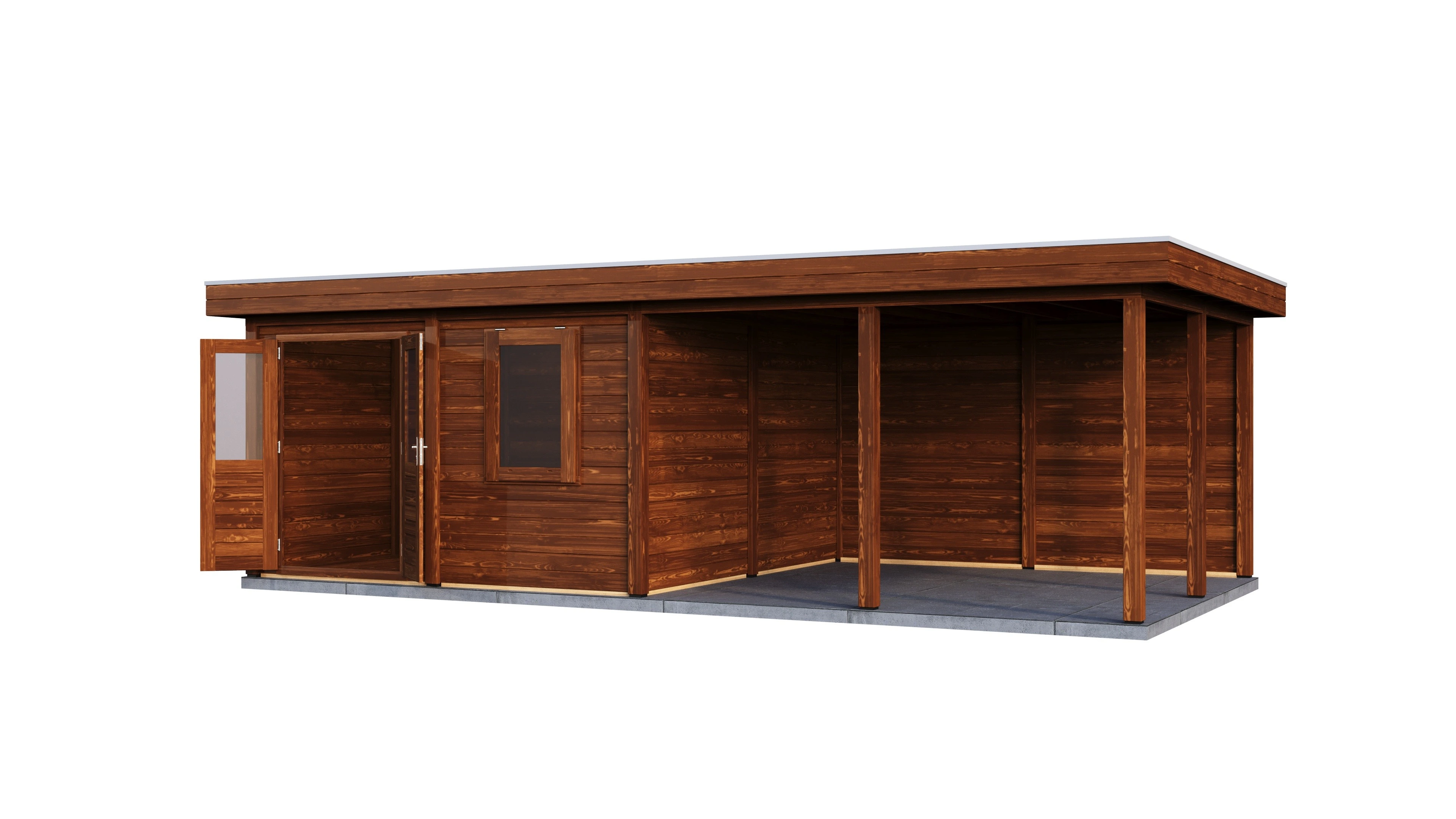 Produktinformationen "Lugarde Select Modern gartenhaus mit vordach Ulm 388x388cm + 400cm - Braunes Öl"