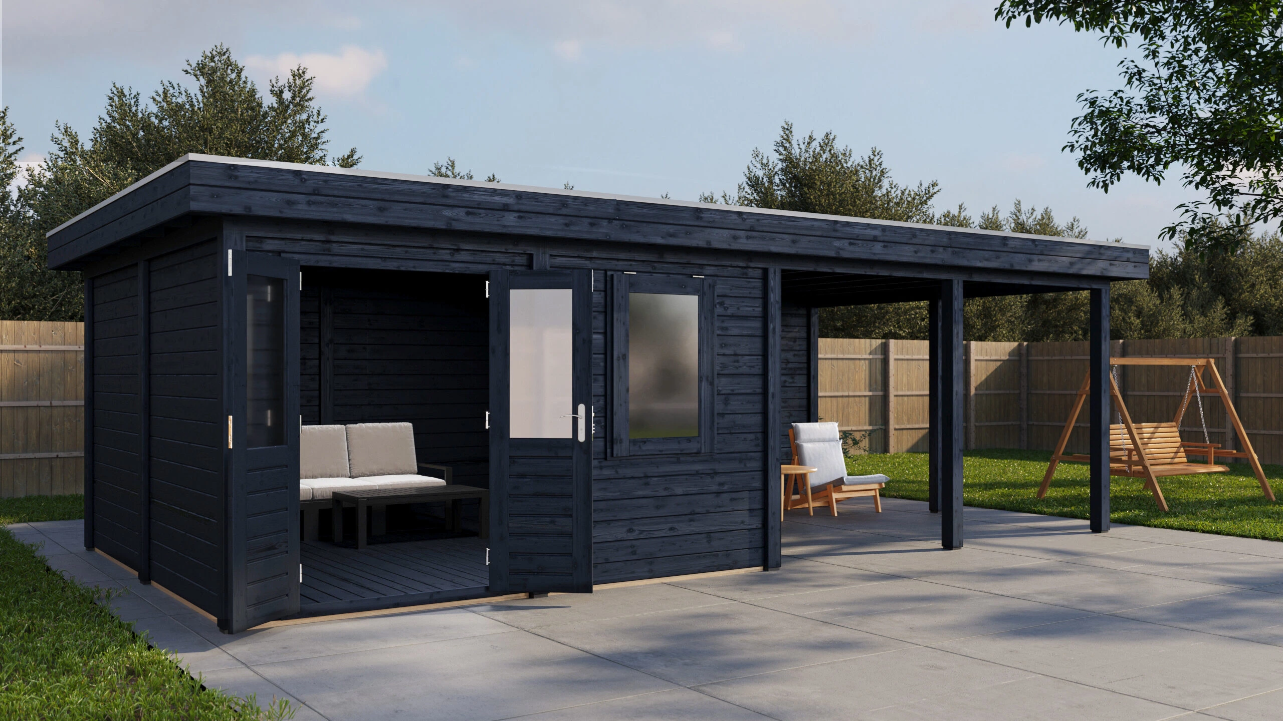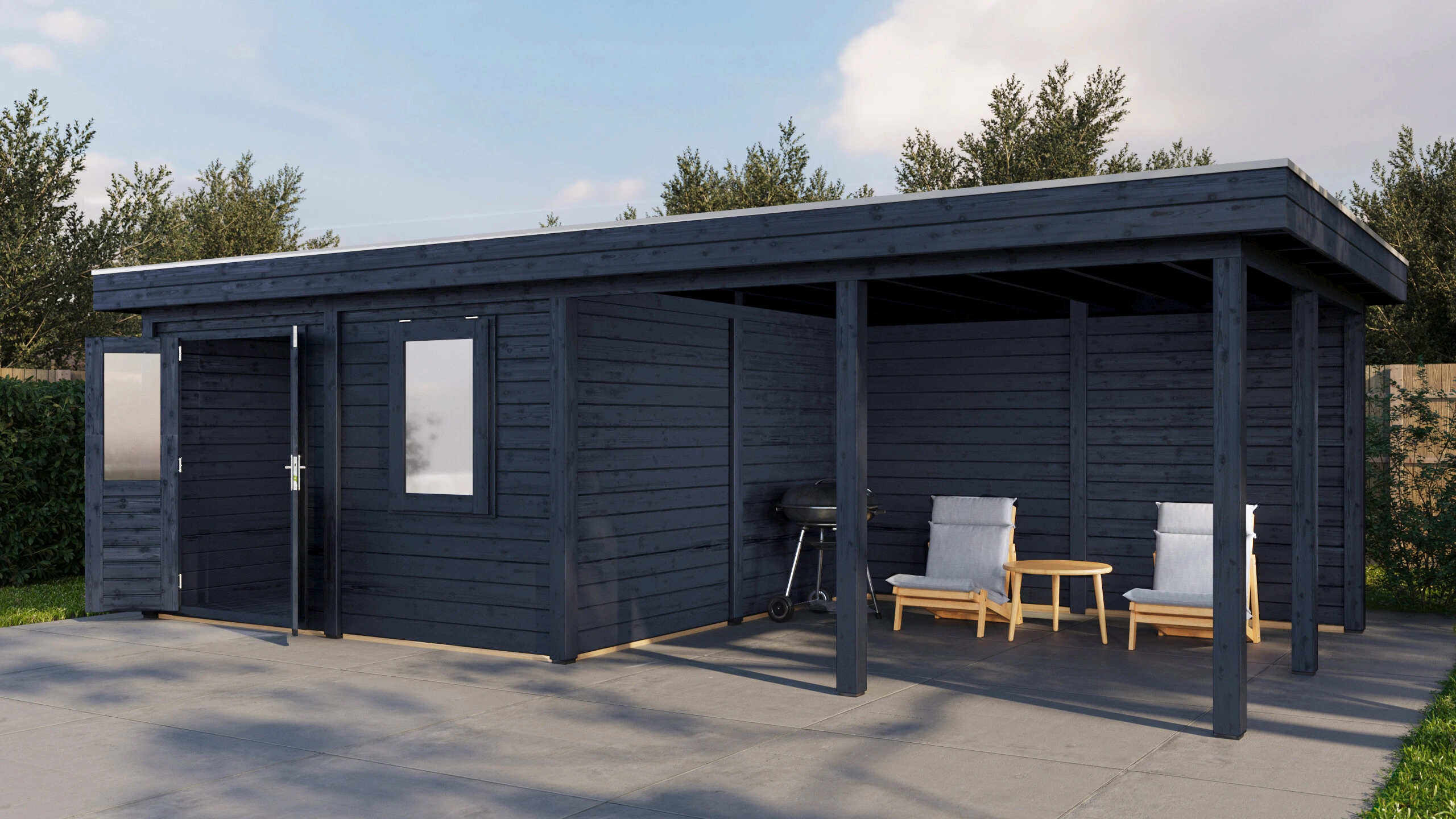 Produktinformationen "Lugarde Select Modern gartenhaus mit vordach Ulm 388x388cm + 400cm - Schwarzes Öl"