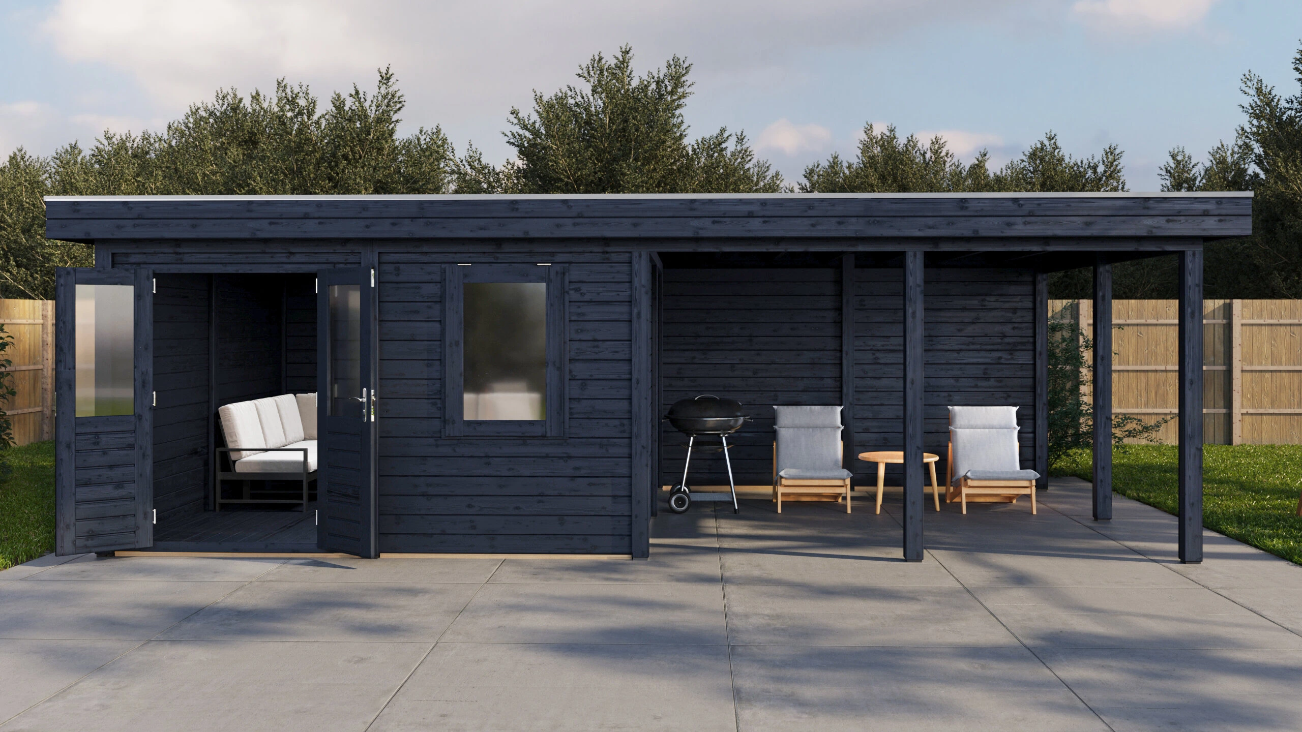 Lugarde Select Modern gartenhaus mit vordach Ulm 388x388cm + 400cm - Schwarzes Öl
